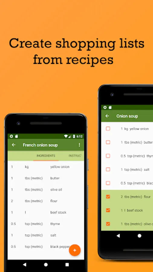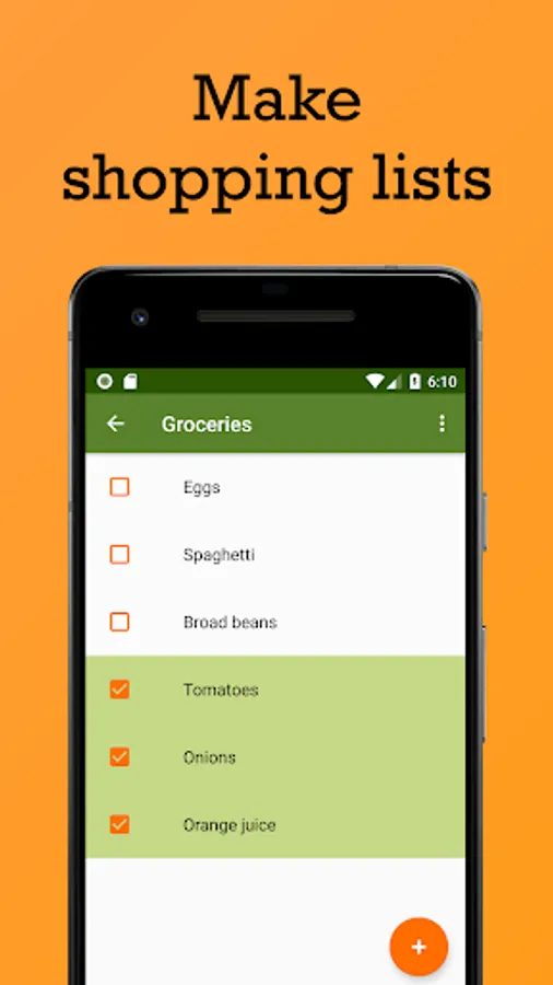 Write down grocery items to keep track of them while shopping. You can even use your recipes to automatically add the ingredients to shopping lists, making sure you never forget a thing. By signing in with your Google account, you can also plan your groceries on multiple devices.