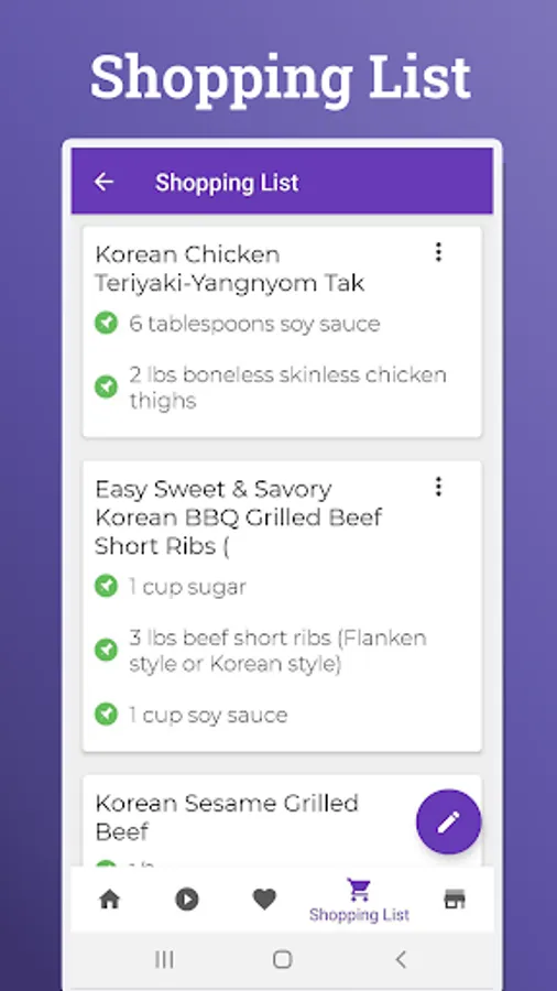 Smart shopping list for Korean cooking