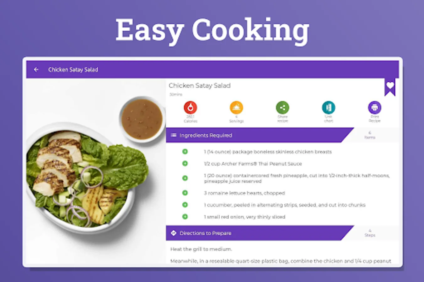 As the recipe is a set of instructions for cooking, our app also provides nutritional information, servings, total time for preparation and recommendations so that nothing can go wrong when you’re cooking.
