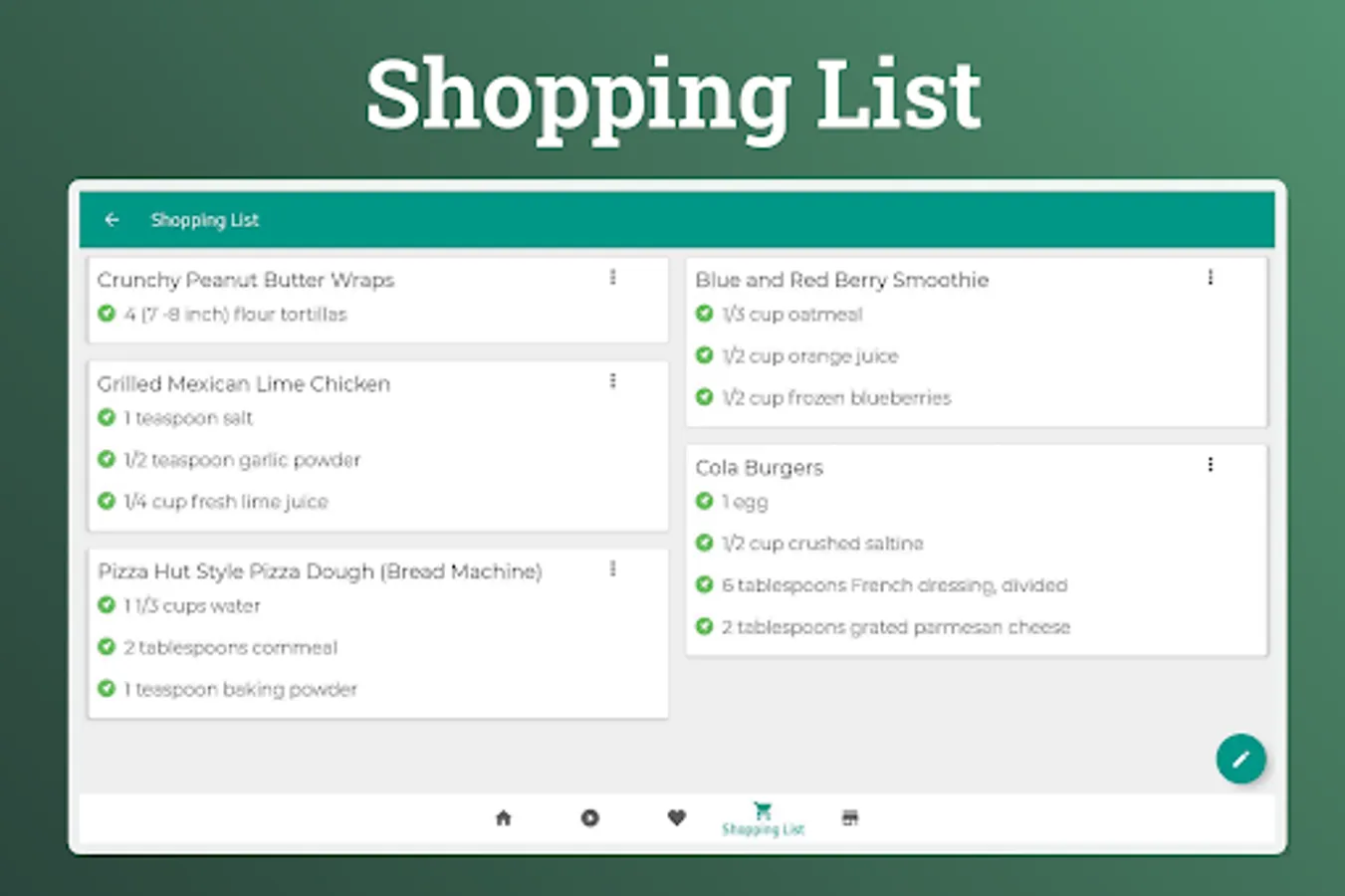 An organized shopping list allows the user to create ingredients list so you won’t miss any for the recipe. Users can also add items directly from recipes.