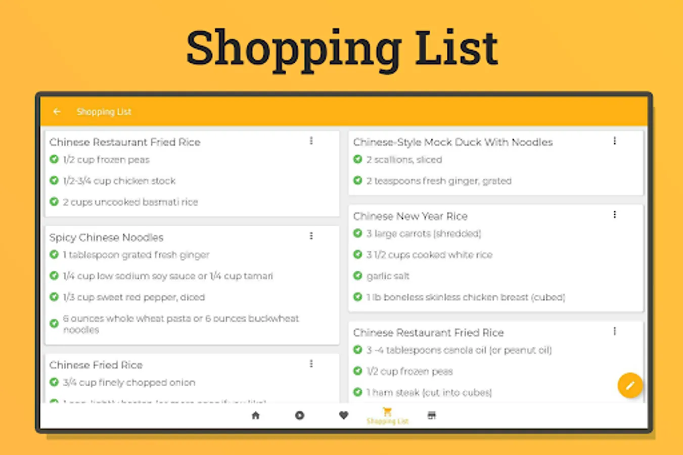 An organized shopping list allows the user to create ingredients list so you won’t miss any for the recipe. Users can also add items directly from recipes and can use offline.