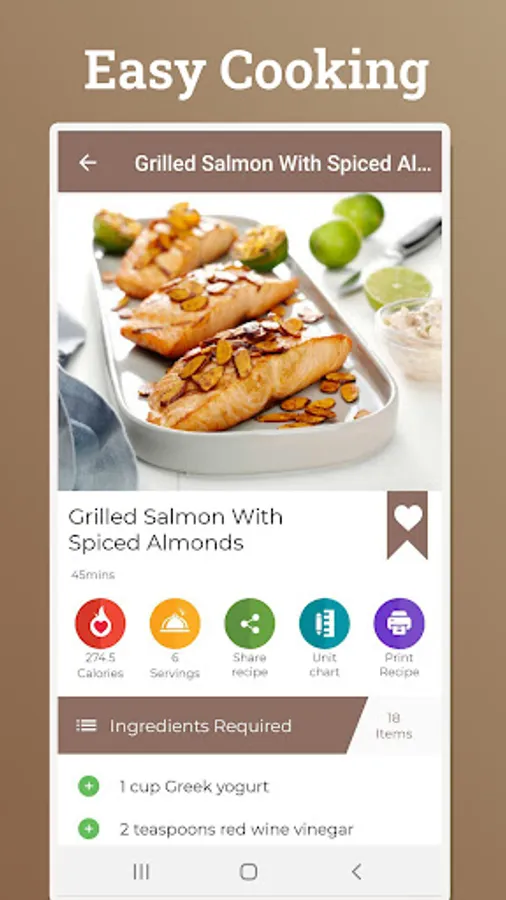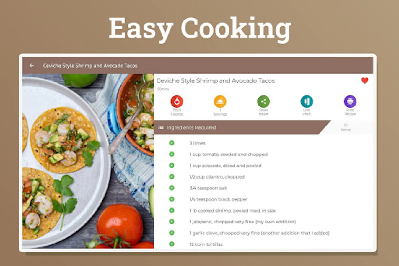 As the recipe is a set of instructions for cooking, our app also provides nutritional information, servings, total time for preparation and recommendations so that nothing can go wrong when you’re cooking.