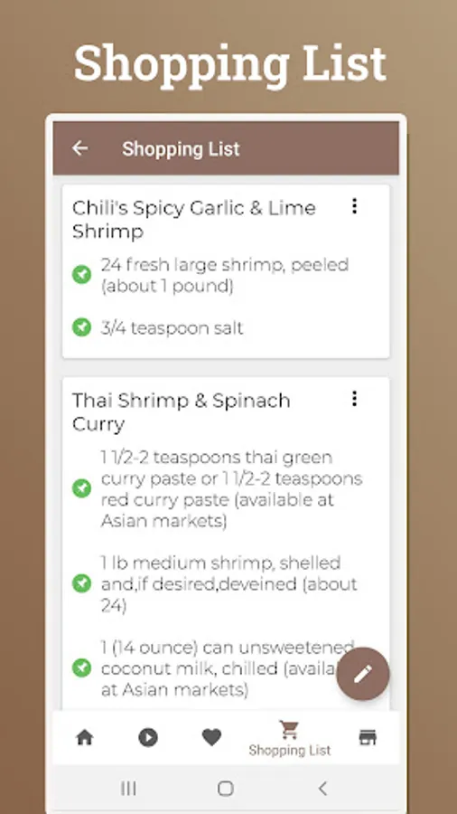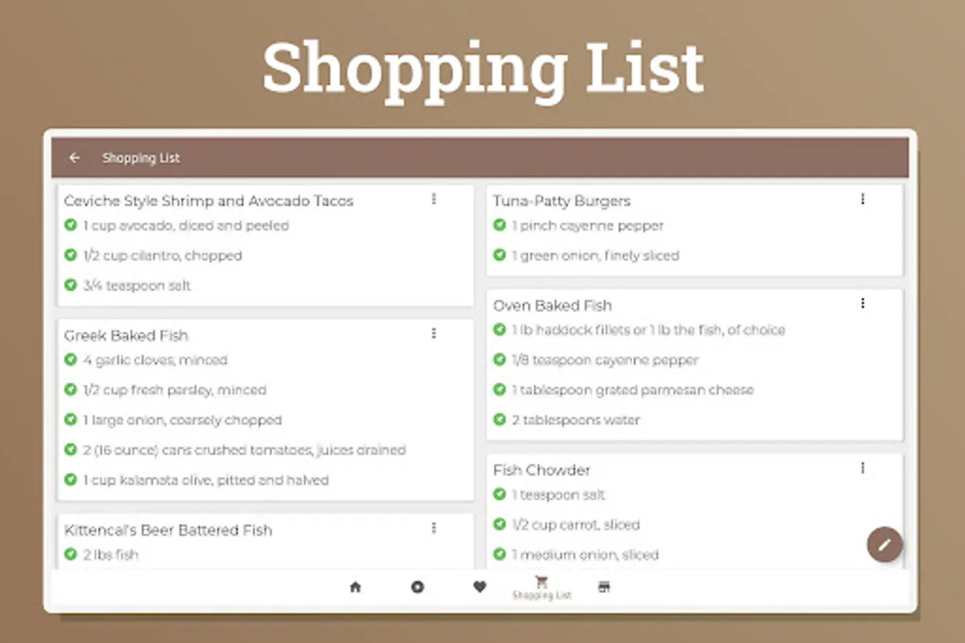 An organized shopping list allows the user to create ingredients list so you won’t miss any for the recipe. Users can also add items directly from recipes.