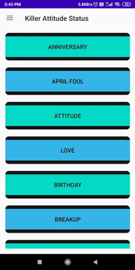 In our Attitude Status App, you'll get only Best Hindi Status for style, Killer Attitude status for Boys, Love Status & Shayari, Friendship Status, Desi Status, Motivation Quotes, Sad Shayari, Romantic Shayari, Romantic Status and much more.