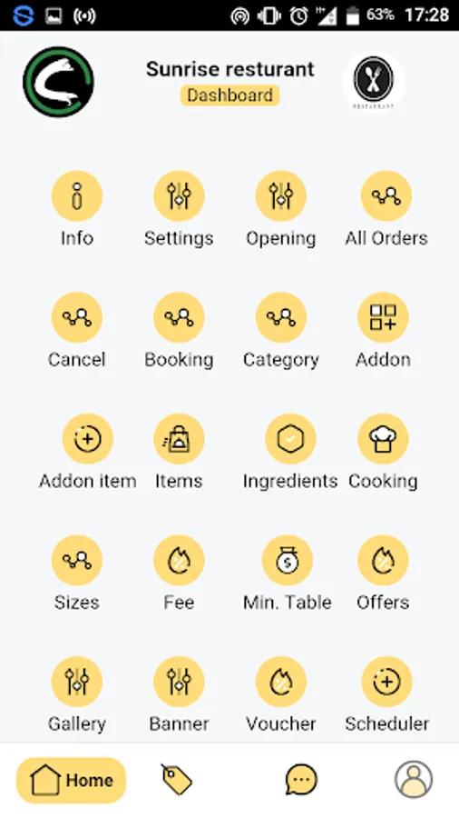Easy Way yo mange your restaurant just with Simple Clicks ( open/close restaurant - order History - search order by Id or by customer name ....)