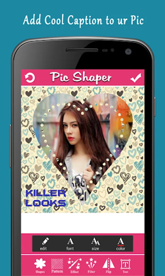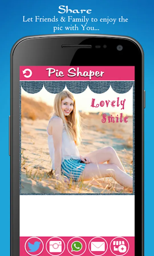 It has huge collection of amazing patterns , shapes ,text fonts. Its featured photo editor allows you to give stylish shapes and effects to your photos. When you have done, share your pic to available social networking sites like Facebook, whatsapp, flicker, instagram etc.