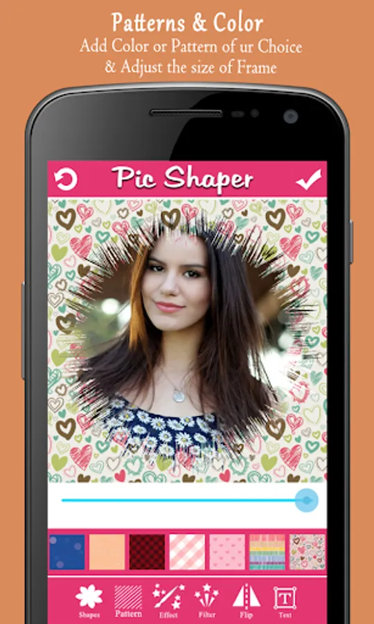 Give a new look to your favourite photos by applying custom shapes , patterns, effects and filters to it,