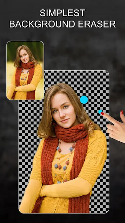 Simple background changer gives you full control on cutting images with precision. It comes with lot of useful tools and features.Finger Touch erase the background area of the picture to cut and paste the cut out on any background of your choice from our collection or use your own from gallery.