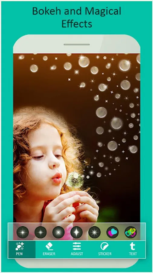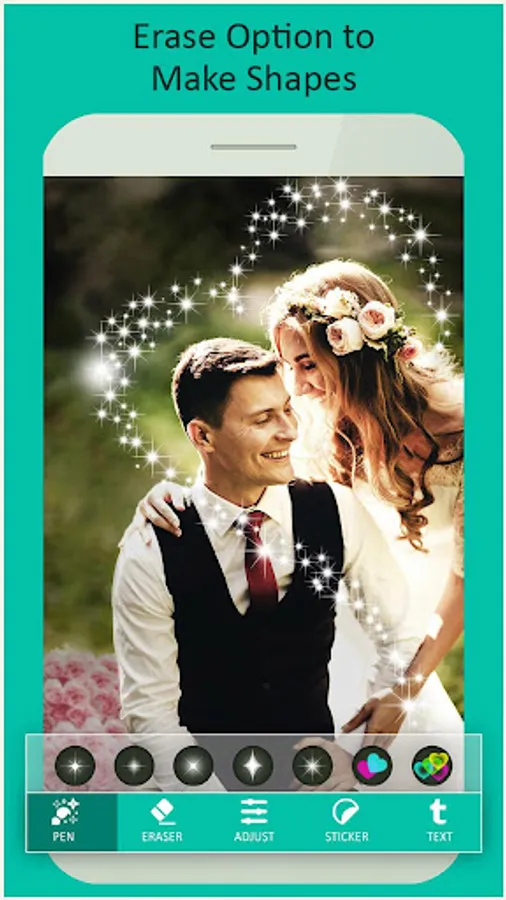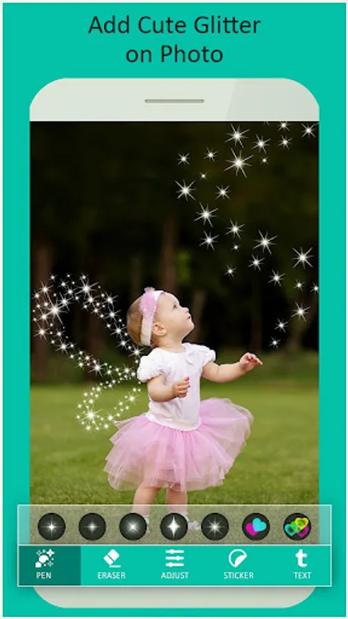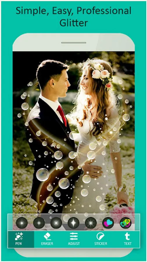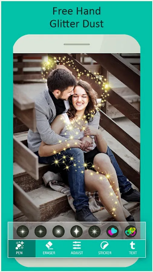 Photo Glitter Effects provides hand draw effects feature. Just select the picture and hand draw effects on the picture from multiple glitter dust effect patterns. Photo Glitter Effects also provide photo effects, sticker and text so that you can get perfect result every time.