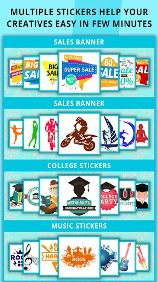Want to create promotional posters, advertisement, offer announcements, cover photos for your shop, restaurant, office or social sites? If yes then this is the app for you.