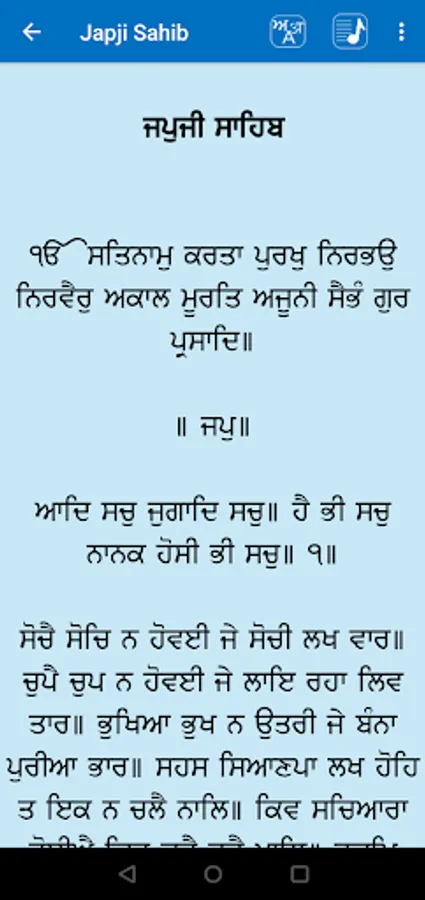 This app includes-Japji Sahib,Jaap Sahib,Tav prasaadhi sava'ye,Choupee saahib,Anand Sahib,Rehras Sahib,Kirtan sohila,Sukhmani Sahib,Chandi di var,Baareh maaha,Shabadh hazaare, Aartiand Ardas.