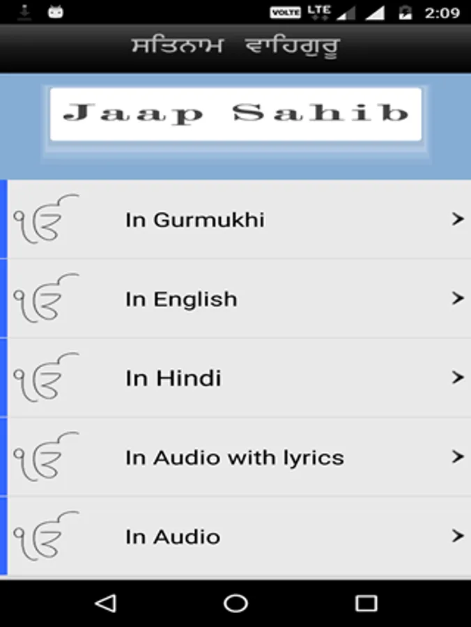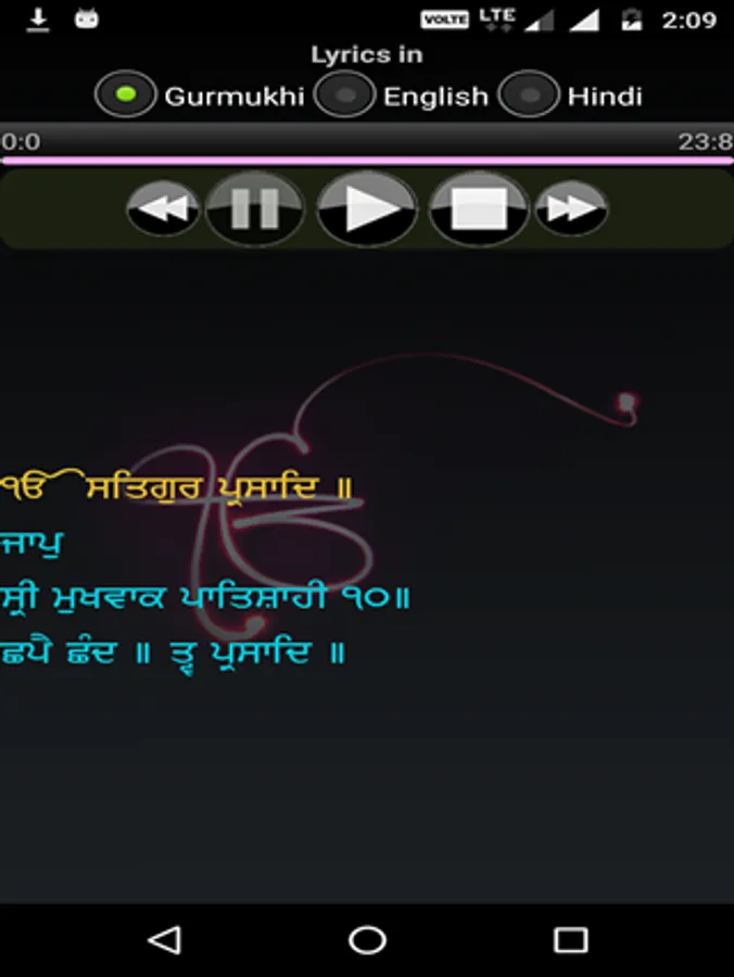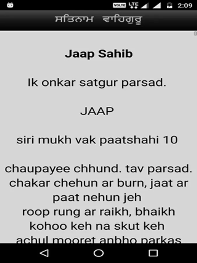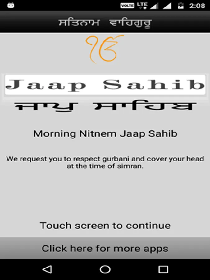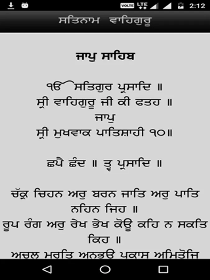 Features of the app is:- Jaap Sahib in Gurmukhi, Jaap Sahib in Hindi, Audio playback of Jaap Sahib