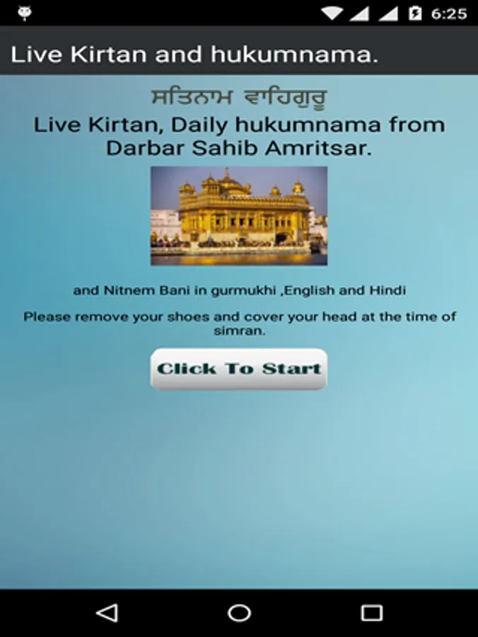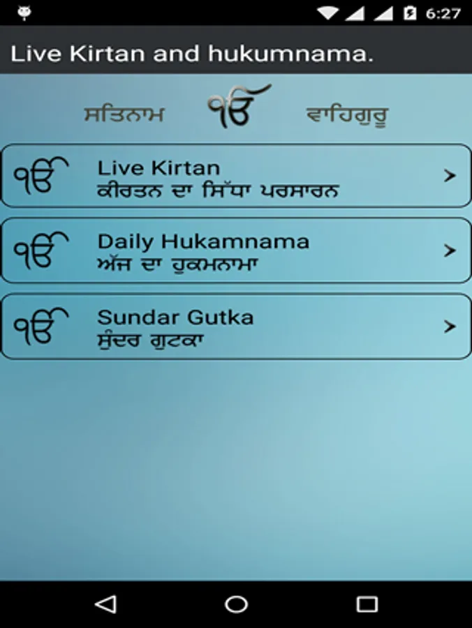 Features of this app is live kirten form Golden temple Amritsar. Daily Hukamnama form Golden temple Amritsar. Sundar gutka in gurmukhi,english, hindi format.