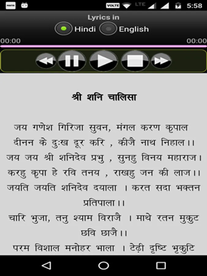 This App is Free & OFFLINE for all users.It contains shri Shani Ji Chalisa in hindi,english and audio format( with hindi and english lyrics).