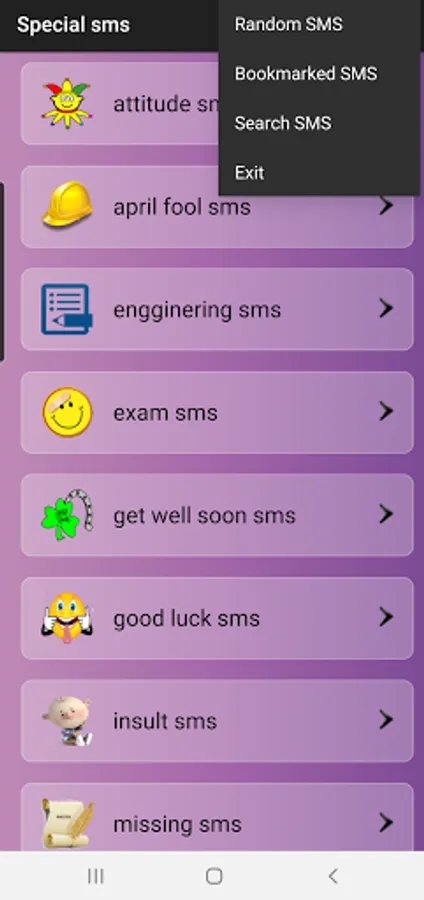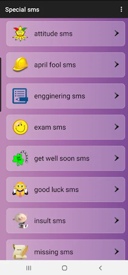 FREE and OFFLINE Special categories sms app with various categories,