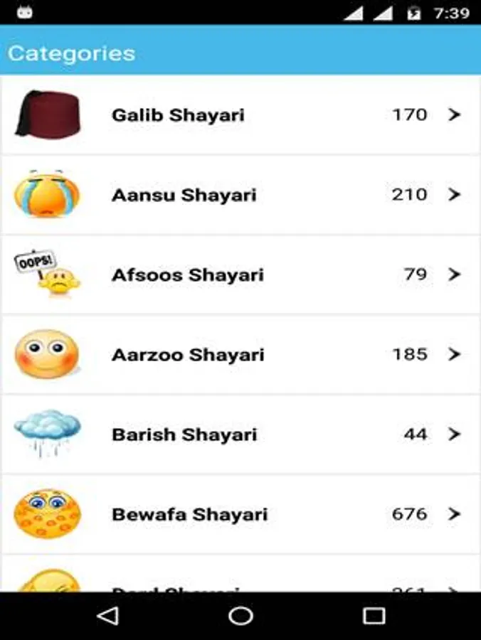 FREE and OFFLINE Urdu Shayari app with various categories,
