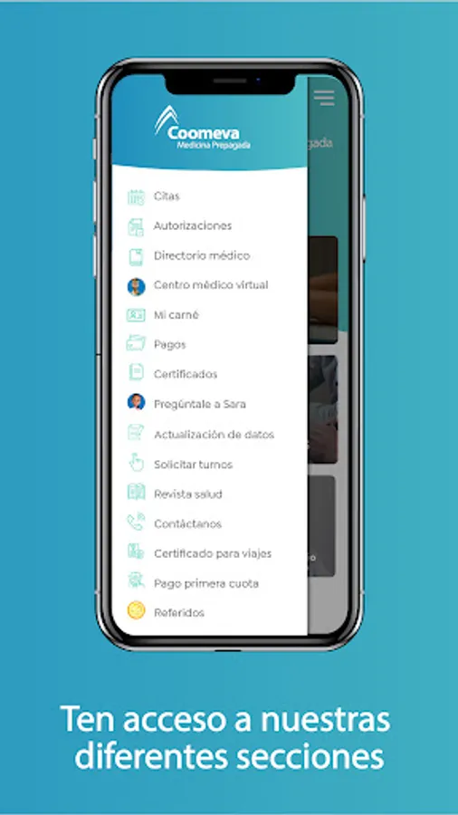 * Ask Sara: With this option you can communicate with our virtual assistant who will answer your questions about administrative issues, programs and services offered by Coomeva Medicina Prepagada.