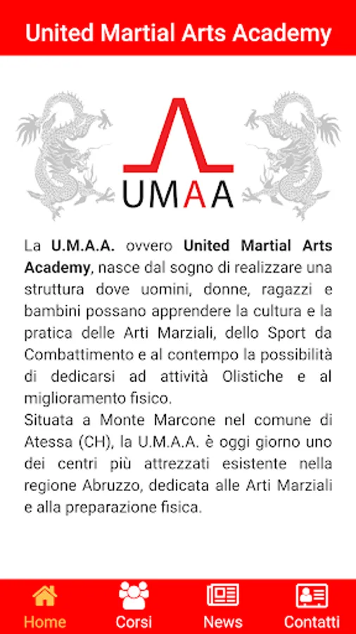 Located in Monte Marcone in the municipality of Atessa (CH), the U.M.A.A. Today is day one of the best equipped centers existing in the Abruzzo region, dedicated to the Martial Arts and fitness.