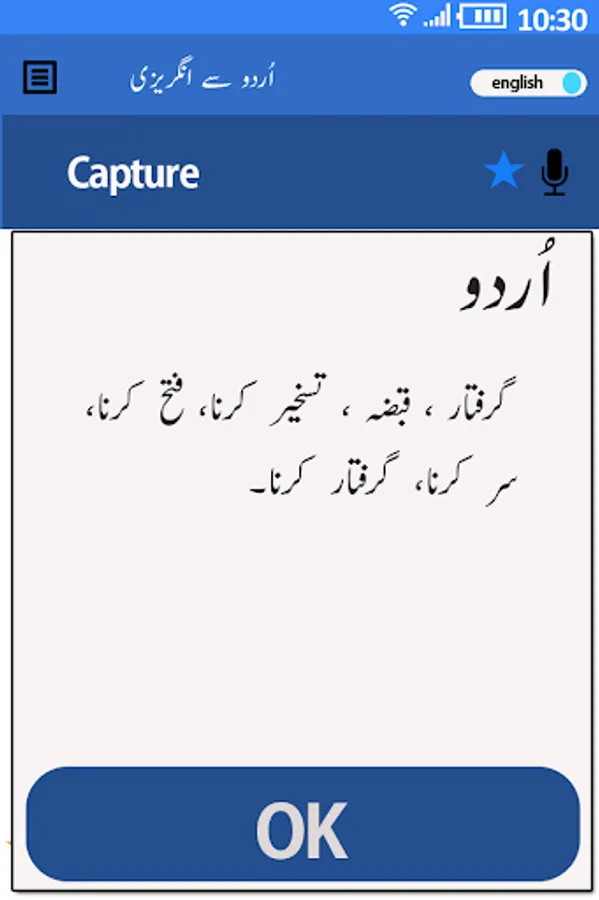 This English to Urdu or Urdu to English Dictionary also contains thousands of phrases, conversations, idioms and synonyms to boost up the learning process. This English to Urdu or Urdu to English app also translates the phrases so to know the actual meanings of the phrases and words both in English or Urdu This English to Urdu or Urdu to English Dictionary also improves your vocabulary both in English and Urdu. This App also has a Voice search options both in English or Urdu Language.