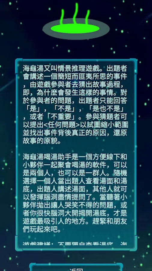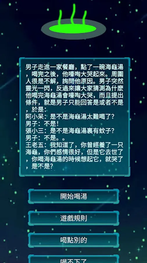 Note: Turtle Soup needs to find friends to play with, or you can join the official group to play. Turtle soup is not logical reasoning, but situational reasoning. Turtle soup itself does not have strong logic. It focuses on whether key clues can be found to reproduce the situation. Players need to narrow the scope of questions to find clues, and finally uncover the bottom of the soup!