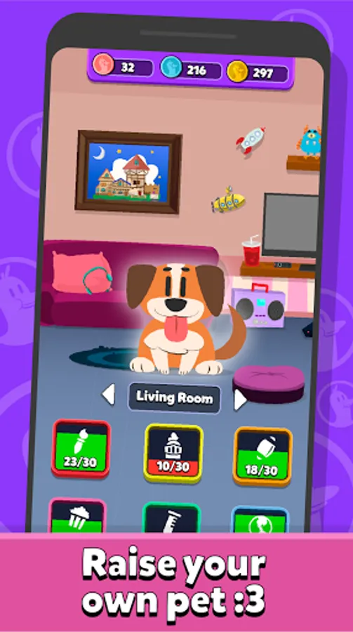 Answer challenging and interesting questions to get coins and beautify your pet's home.