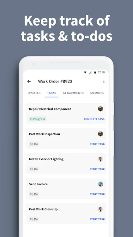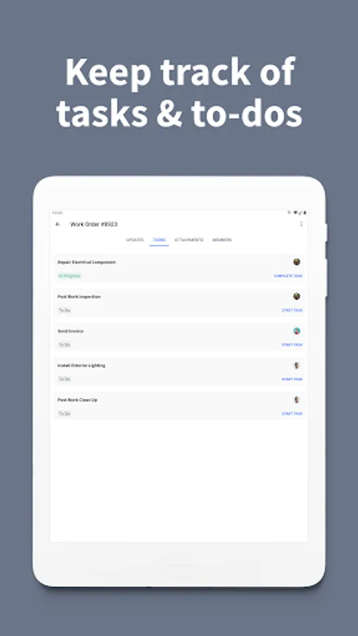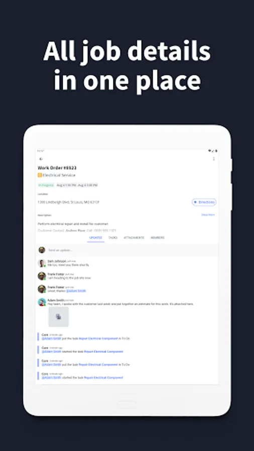 - Digital task lists: Organize your tasks and manage your team's progress on the go.