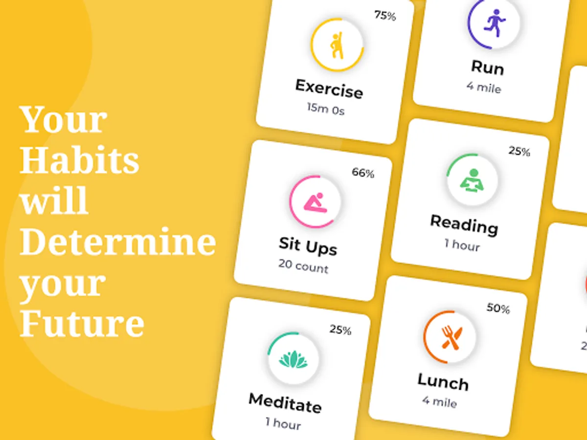 Habit Tracker helps you to build positive habits and keeps track of your day to day habits and routines. Set personal goals, track your progress, and motivate yourself to achieve new heights!