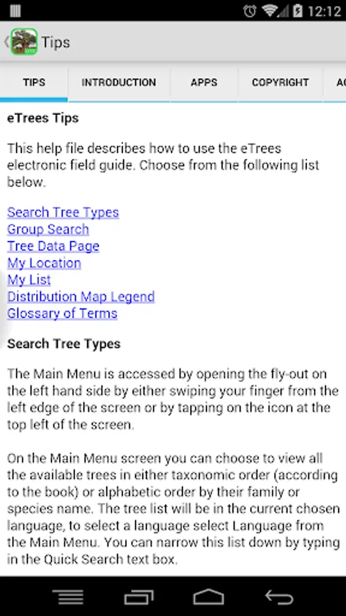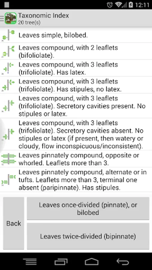 * A 'Group Search' that allows you to easily identify a tree species based on the characteristics of the leaves.