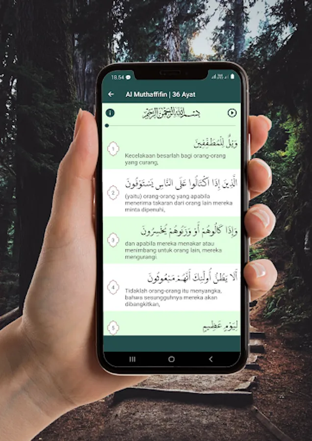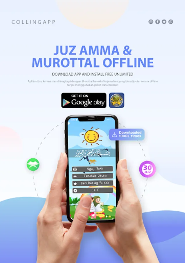 contains the letters of the holy verses of the Koran along with translations and is equipped with melodious Murottal,