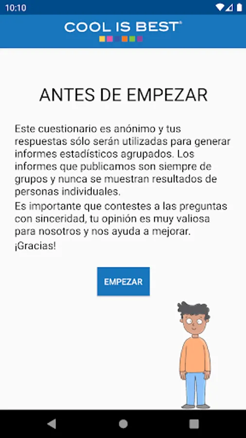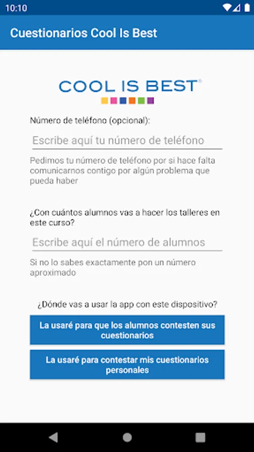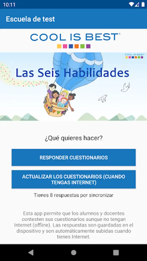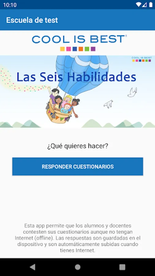 Answer the COOL IS BEST questionnaires both online and offline. The answers are stored and you can upload them when you have an Internet connection.