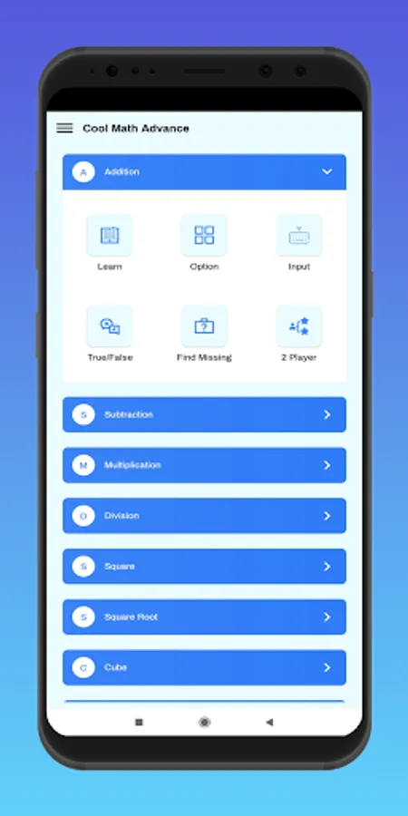 Learn Addition, Subtraction, Multiplication, Division, Square, Square root, Cube, Cube Root, Factorial, and many more..