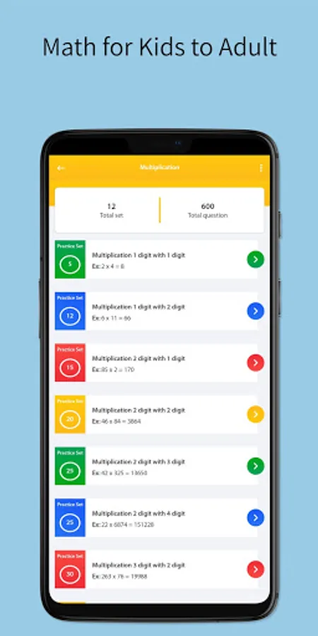Multiplication of 1 digit, 2 digits, 3 digits, 4 digits.