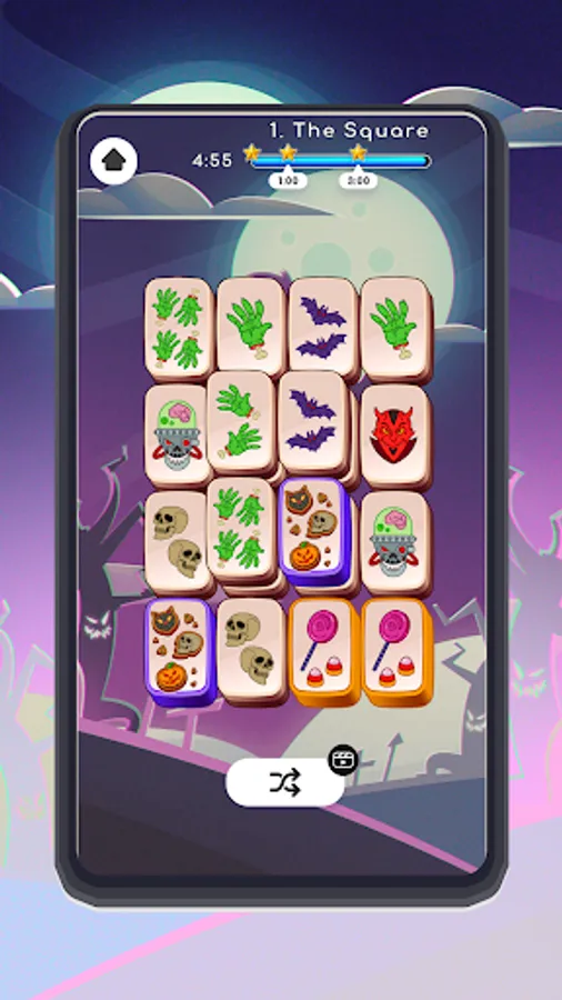 The goal of Mahjong Solitaire is to find the pairs of tiles as quickly as possible. The faster you match the tiles, the more stars you get! With the stars you earn in each Mahjong level you can unlock amazing backgrounds and customize this clicker game to your liking. Play casual single player Mahjong and unlock the Halloween theme. You can also play free mahjong with Egypt tiles, make pairs of cards with Christmas illustrations, or match tiles with soccer pictures.