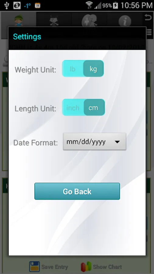 -Support multiple units for measures, including lb/oz/ft/in and cm/kg;