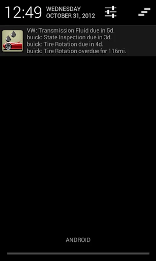 For the maintenance reminder function, the application provides comprehensive logging and reminders for almost all regular car services based on both mileage and dates, such as oil change, tire rotation, wheel alignment, air filter change, coolant flush, transmission fluid change, brake pad change, timing belt replacement, annual inspection and spark plug replacement. Even more, you can create your own customized service reminders, log costs, and write notes about your cars, such as part number, state registration, appointment time, mechanic shop phone number etc. With just a glance at your phone, you will have all the service records at hand! Notifications at status bar will automatically show up to remind you when a service is due within a week, or 200 miles, so that you will never miss a needed maintenance.