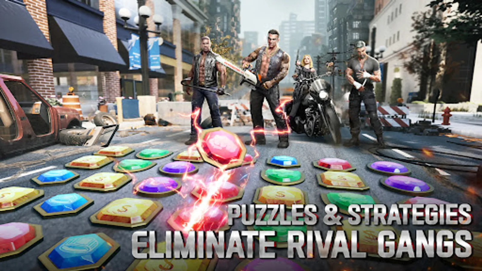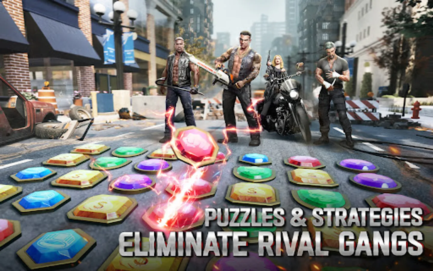 Recruit various talented experts, train soldiers who would die fighting for you, and build a gang made of Bikers, Ruffians, Shooters and Vehicles. Be the leader to reclaim all the territories for your own and re-establish the order of the underworld.