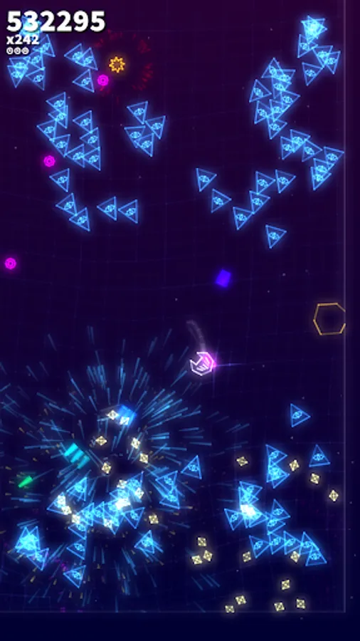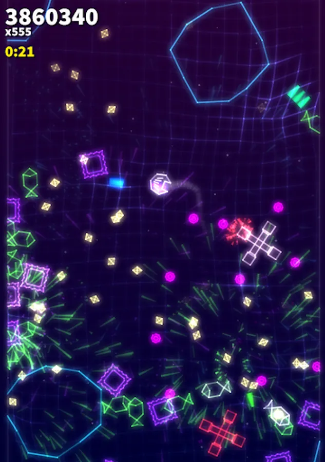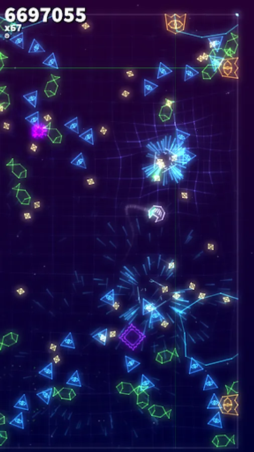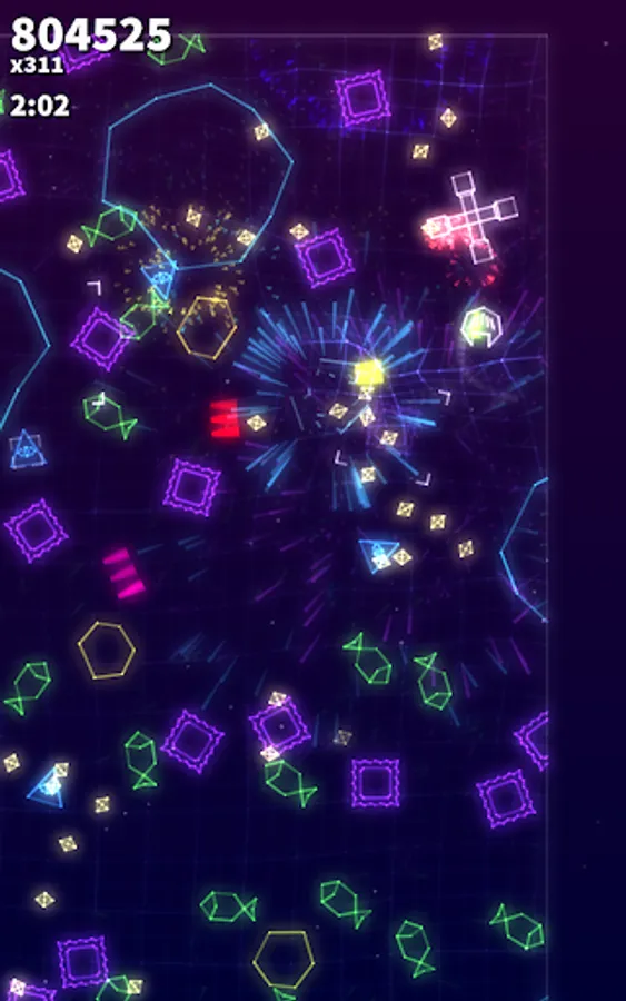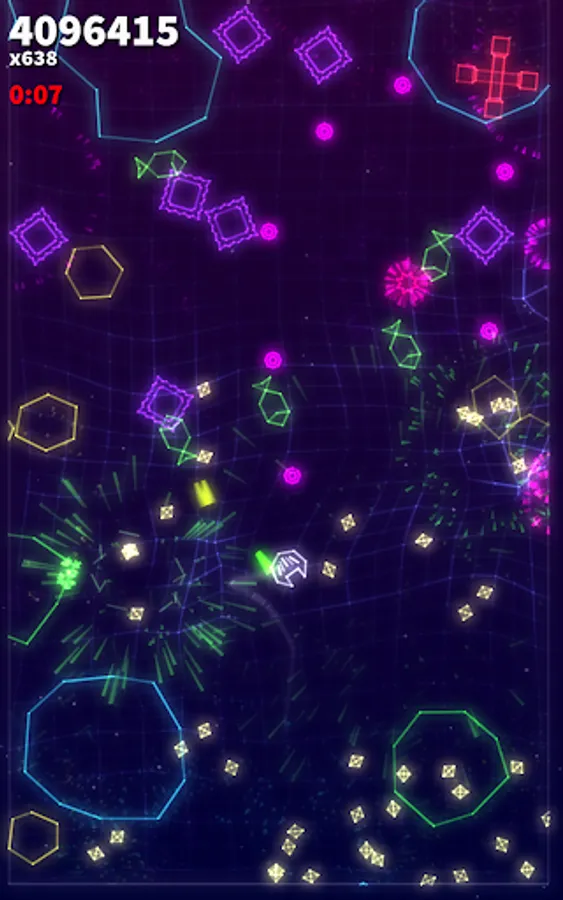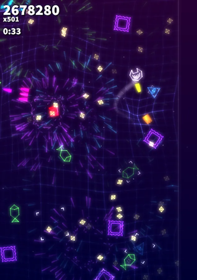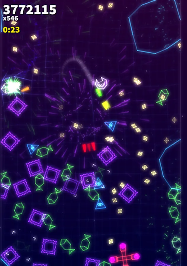 You'll find all the familiar notes - retina-searing glowy vectors, a variety of enemies, multiple game modes, score multipliers, old-skool breakbeats, evolving firepower.. you know the drill. The twist in this "twin-stick shooter" is you can play in portrait mode with just one hand on phones and tablets, or turn your device sideways for more traditional double thumb play.