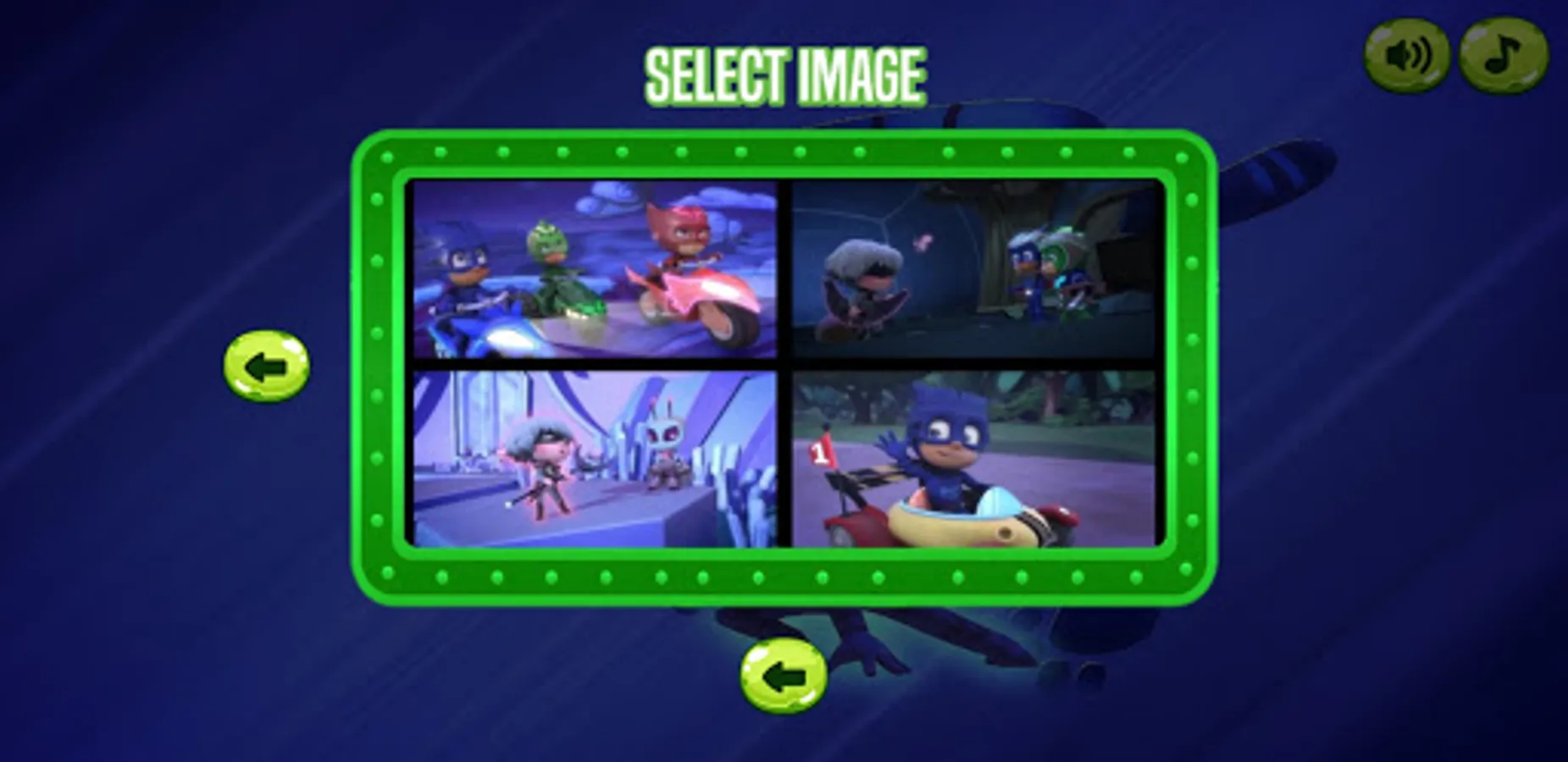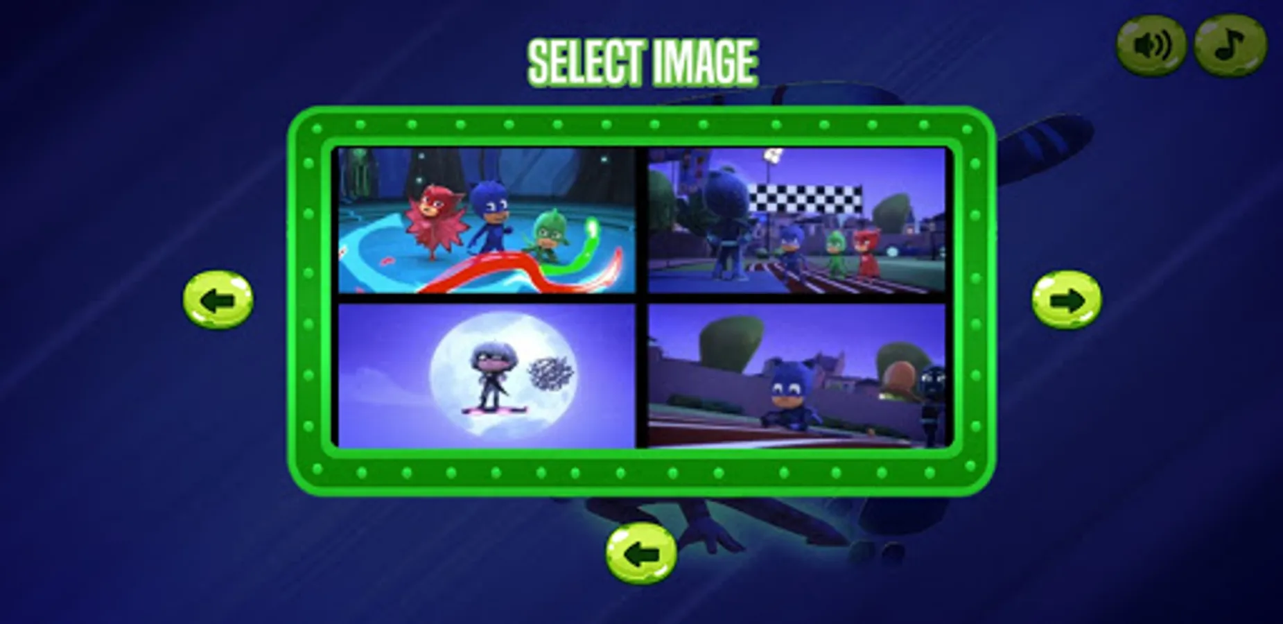 In the special world of green boys ... find the right pieces to complete the pictures of those lovely pj characters