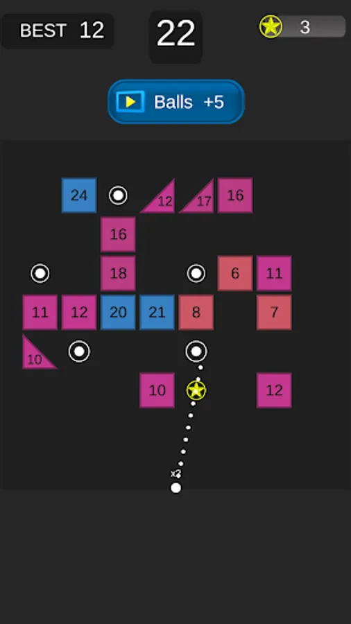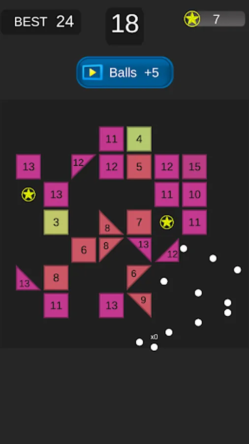 Swipe your finger to throw the balls and break the bricks. Try to break as many bricks as possible before they move down to the bottom.