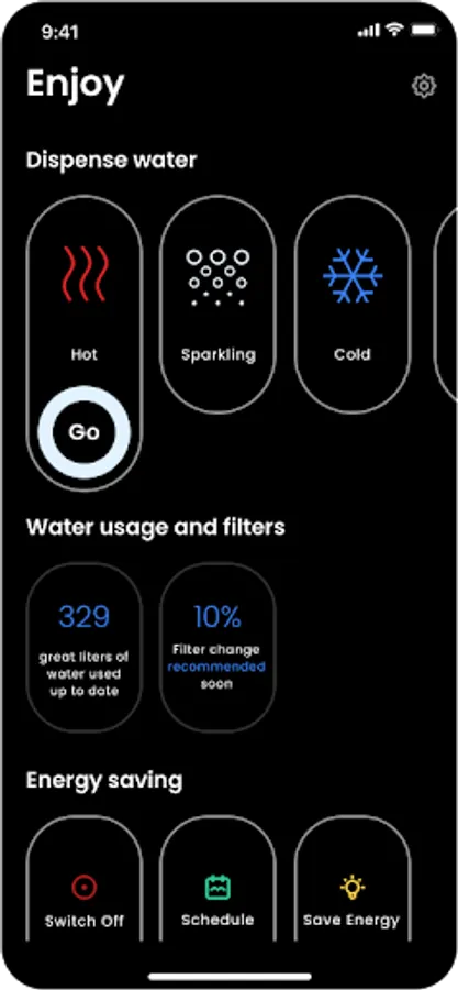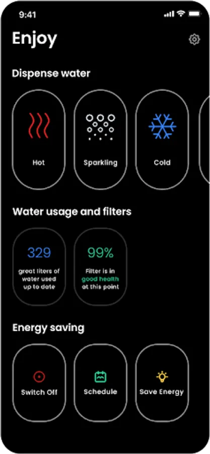 Enjoy pure refreshment, manage and control your device with the Cool Touch water dispenser mobile app. Dispense cold, hot, sparkling and room temperature water using the app, or set your desired temperature of dispensed water from the Cool Touch water dispenser.