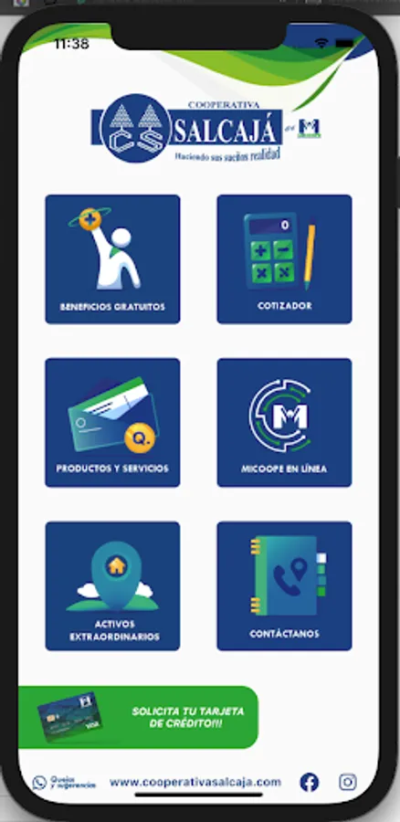 At Cooperativa Salcajá R.L. With more than 50 years of experience in the financial area in Guatemala, this APP is designed and developed with the aim of publicizing all the products and services it has, providing our Associates with a real-time quote for our products, locations and telephones of each agency, agent and service points as well as facilitating the use of MICOOPE online.