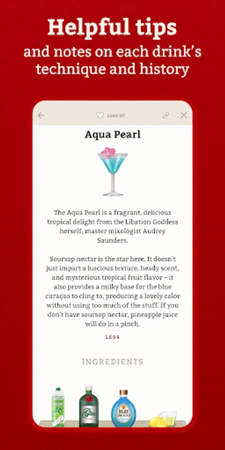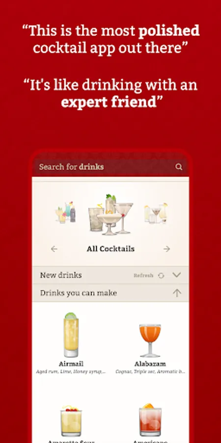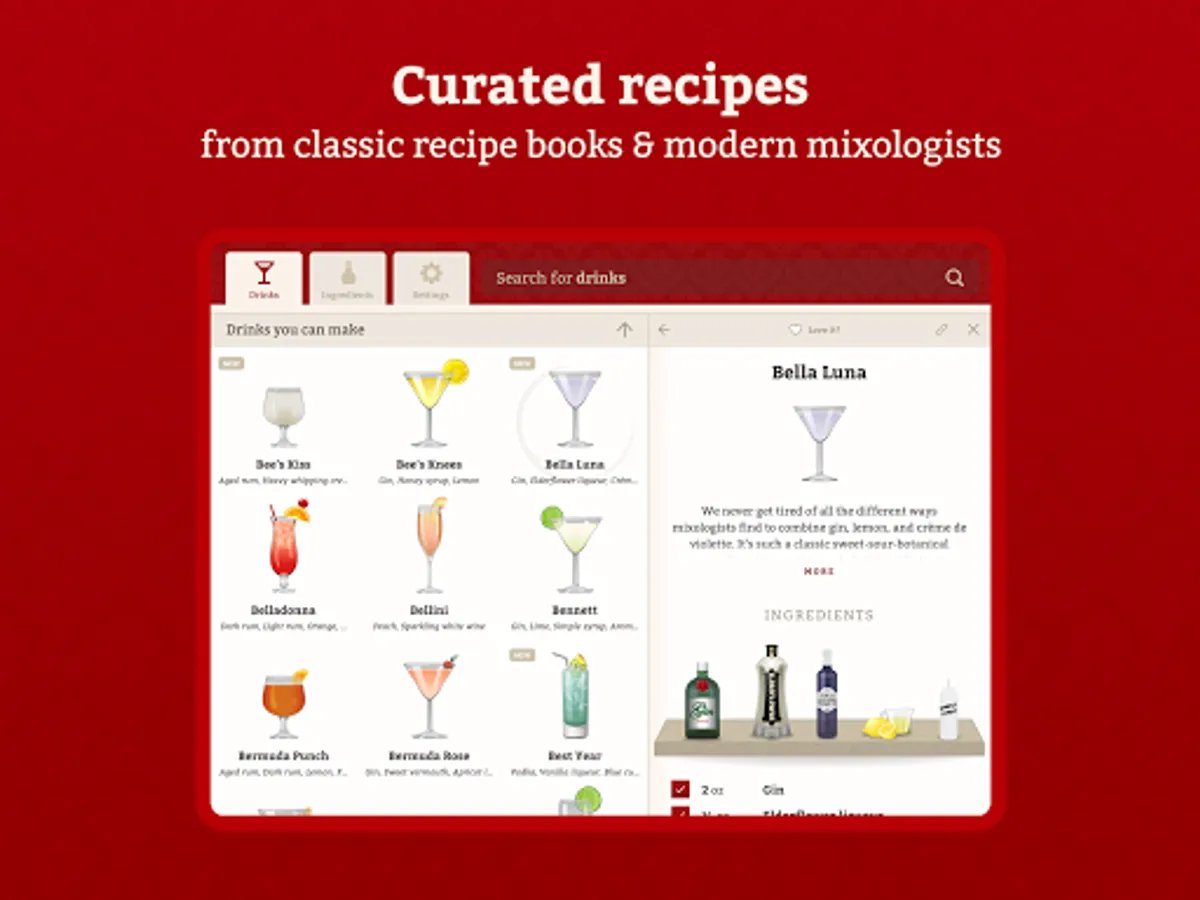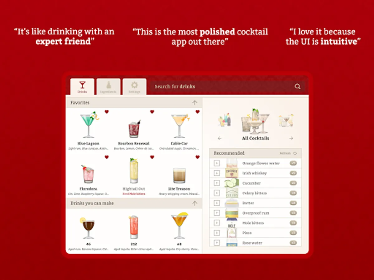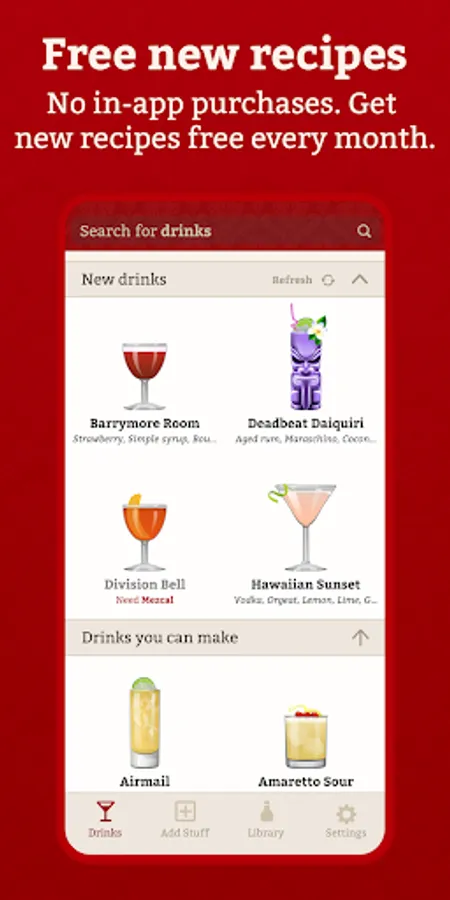 - No in-app purchases - you buy it once, you get updates and new drinks forever.