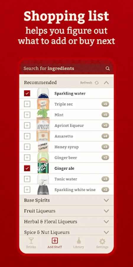 Check off ingredients you have, and Cocktail Party will show you all the drinks you can make right now. It’s that easy - no shopping trip required!
