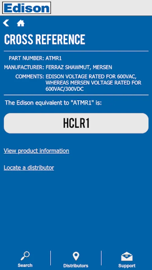 Edison Fuse's XRef tool is an ideal tool for electricians, electrical wholesalers, purchasing professionals, equipment specifiers and electrical engineers. With over 200,000 parts within the database, competitor parts can be cross-referenced anytime, anywhere for free! Edison product details and data sheets can be downloaded directly on to your mobile device.