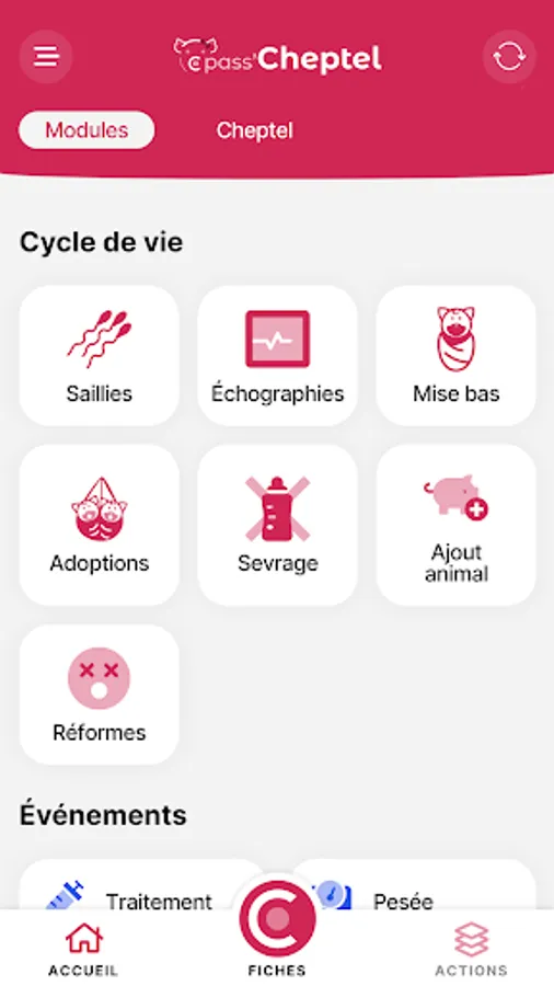 Pass'Cheptel is in connection with the Pass'Porc application and allows traceability from the mother to the slaughterhouse of your butchers.