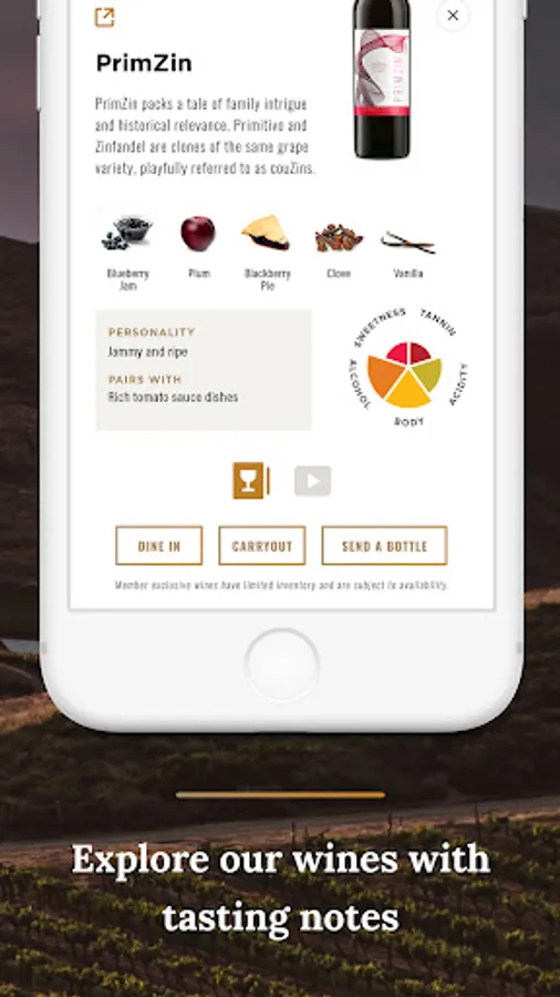 - WINE (WITH TASTING NOTES): Show available wines in your Member account and your pickup history. Each wine clicks to Tasting Notes for your reference! Not a Member? Join our Wine Club.