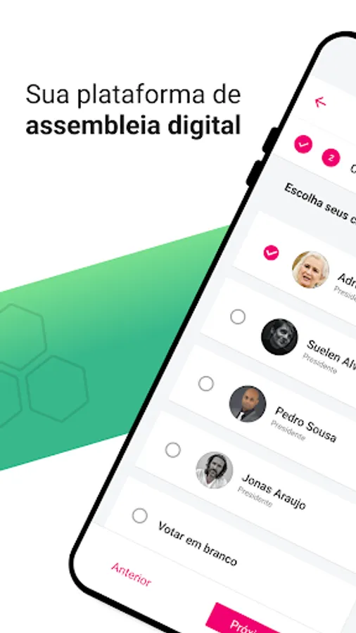 Place for the participant to interact digitally and actively, registering their presence, voting on the proposals and electing their candidates.