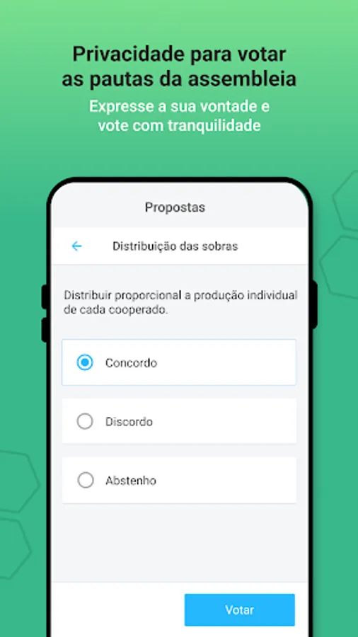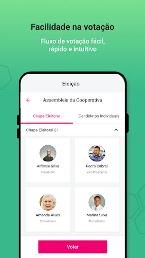 Register participant's check-ins, create and manage theme topics, enter proposals and elect your candidates. All interaction history is stored for future reference at any time. All this in a safe, simple and fast platform.