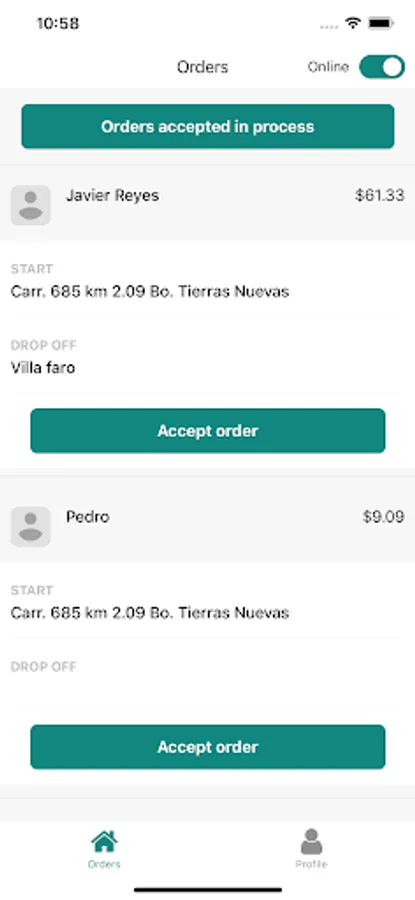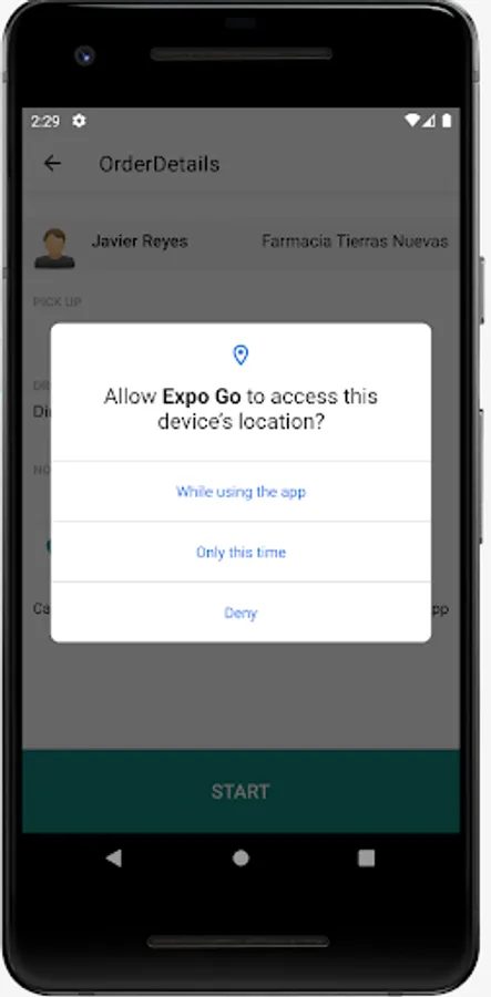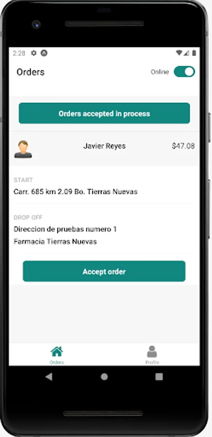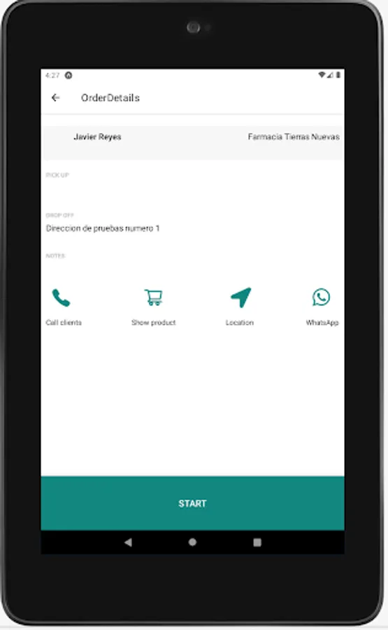 In this app you're going to choose what product carry out and see what address and location an order should be transported.
