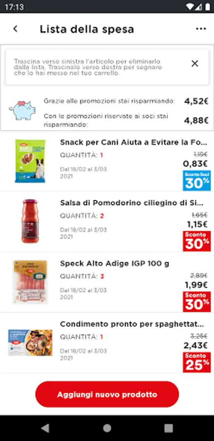 Prepare your shopping list in advance and check the products on offer! You can discover the active promotions on the products you need and easily organize your shopping also on the basis of convenience. To share it with whoever you want, just click.